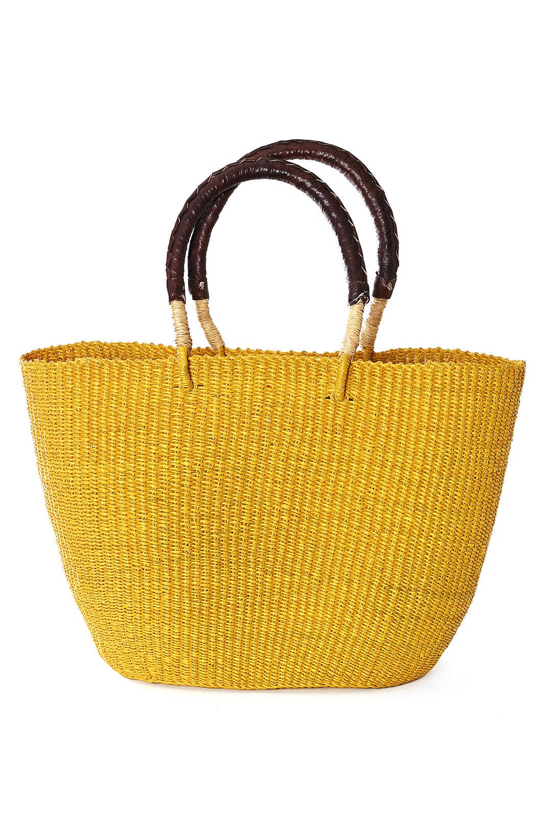 Artisans in the Bolgatanga region of Ghana weave this large open-top tote from thick, tough elephant grass that has been dyed yellow.