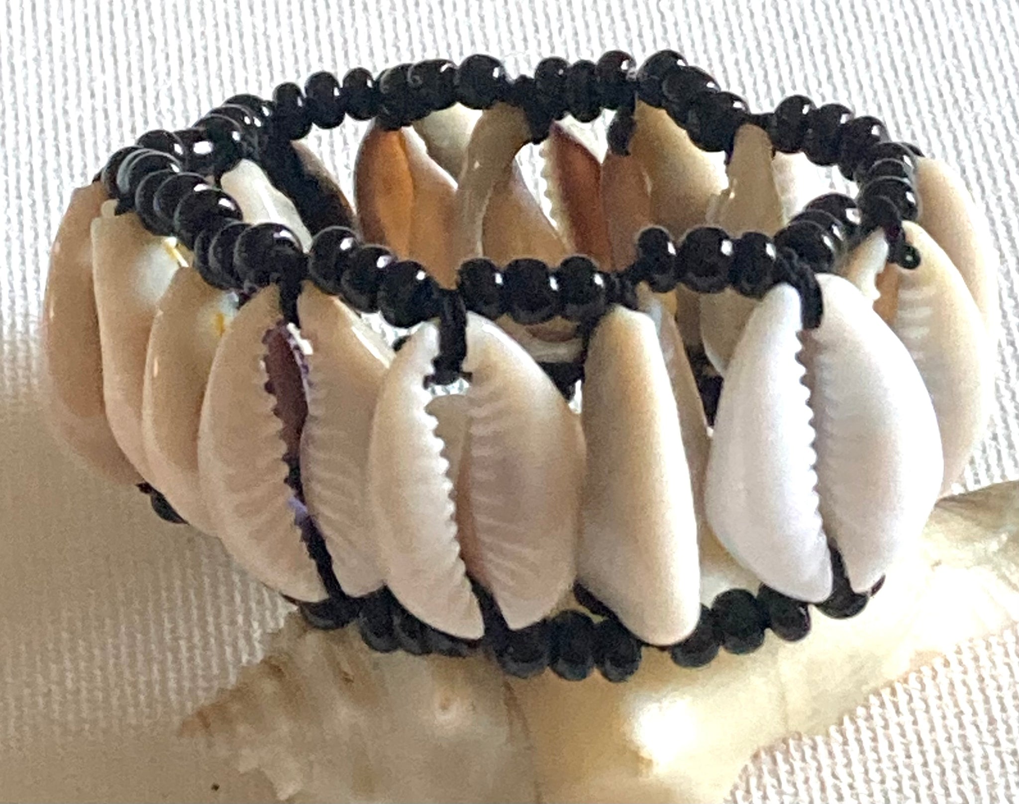 Cowrie shells have been used for centuries as currency in Africa. Today, you will see cowrie shells used in jewelry, to adorn clothing and home furnishings.