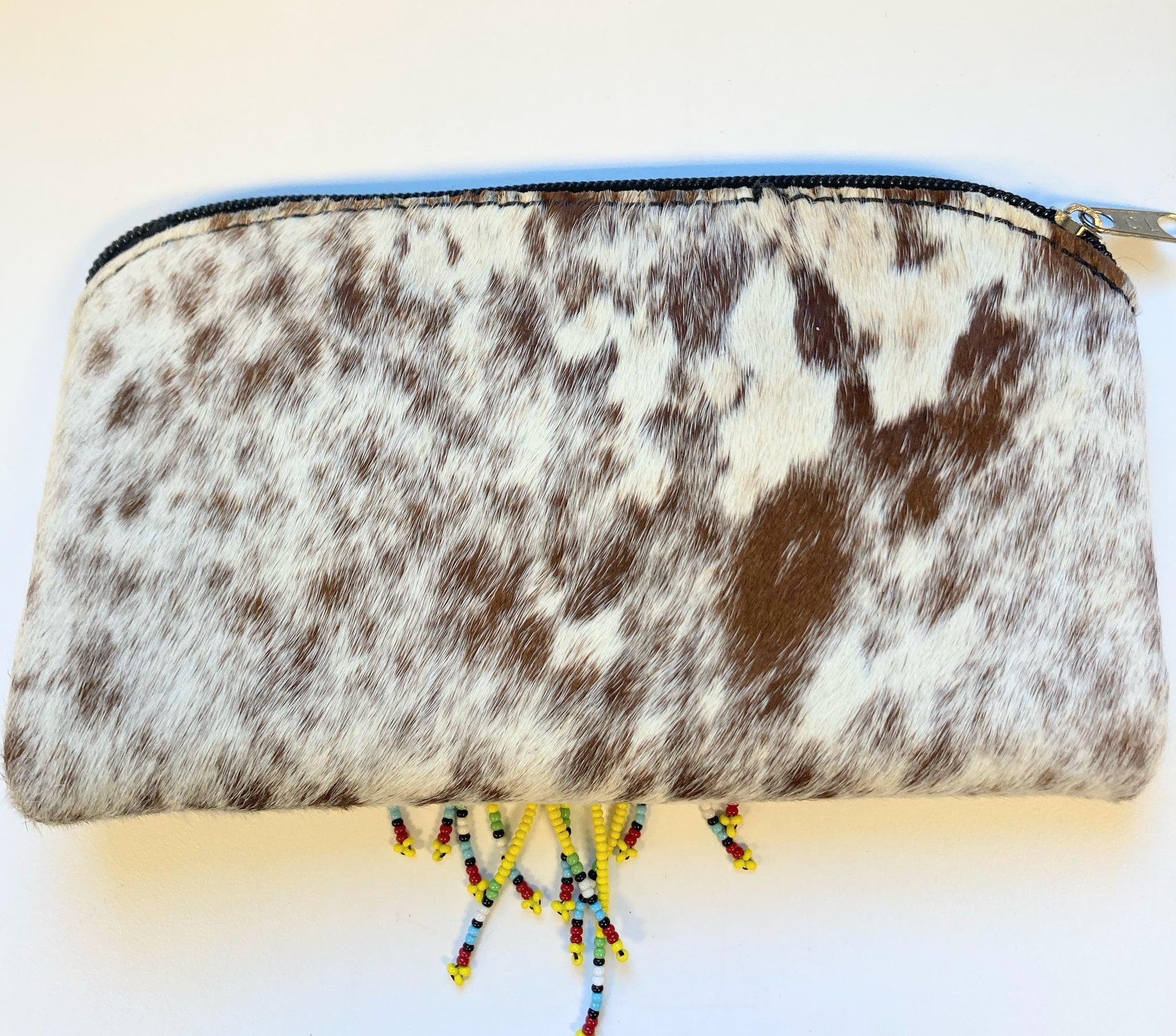 Features animal skin and intricate beadwork