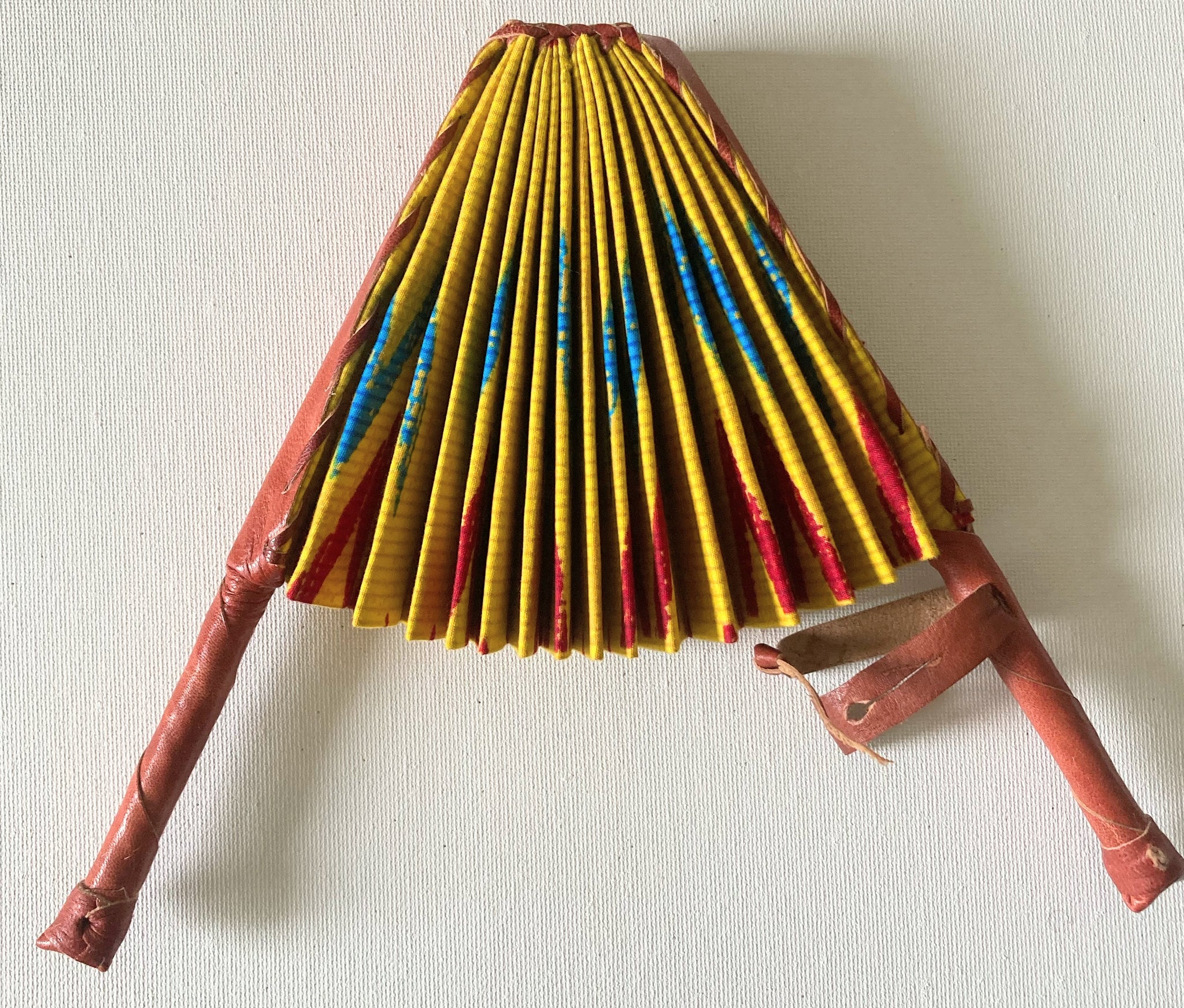 These folding fabric fans are made from locally produced African fabric with leather handles and closure. It is travel-size and portable and can be used at home or on-the-go.